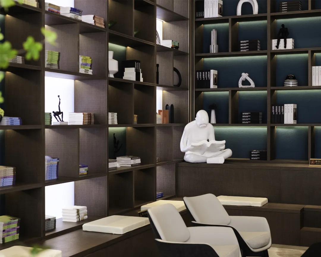 該項目設計為新中式現(xiàn)代風格,將中式元素與現(xiàn)代材質巧妙兼柔進行布置,總體布局上對稱均衡,端正穩(wěn)健,在裝飾細節(jié)上富于變化,充分體現(xiàn)出中國傳統(tǒng)美學精神。整體空間簡潔大方,相得益彰。