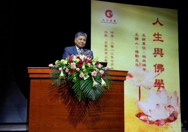 7月24日下午,我公司部分同事作為旭日集團(tuán)駐石企業(yè)員工有幸參與了《生活禪夏令營二十屆紀(jì)念大會(huì)》的部分活動(dòng)。此次活動(dòng)是由河北省佛教協(xié)會(huì)主辦、趙縣柏林禪寺承辦、《禪》雜志社協(xié)辦。下午14:00一部關(guān)于禪宗人物的黃梅劇《傳燈》在人民會(huì)堂一層大廳拉開序幕,該劇再現(xiàn)了黃梅禪宗四祖?zhèn)魑遄?、五祖?zhèn)髁娴膫髌婀适隆;趾甏髿獾膱?chǎng)面、清新自然的風(fēng)格、感人的故事情節(jié)和演員們出彩的表演讓現(xiàn)場(chǎng)不時(shí)爆發(fā)出熱烈的掌聲。在這之后現(xiàn)場(chǎng)居士、夏令營員,及企業(yè)員工近1000名觀眾又有幸聆聽了楊先生的《人生與佛學(xué)》講座,講座過程中楊先生與現(xiàn)場(chǎng)觀眾進(jìn)行了深入的交流與互動(dòng)。