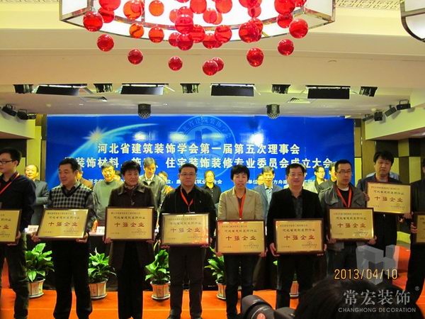 2013年4月10日,由河北省建筑裝飾學會主辦的河北省建筑裝飾學會第一屆第五次理事會暨裝飾材料、施工、住宅裝飾裝修專業(yè)委員會成立大會在唐山召開。會上,對榮獲2012年河北省建筑裝飾行業(yè)省優(yōu)工程、科技示范工程及成果企業(yè)、十強企業(yè)、優(yōu)秀企業(yè)家及優(yōu)秀女企業(yè)家、優(yōu)秀(杰出)項目經理進行表彰。