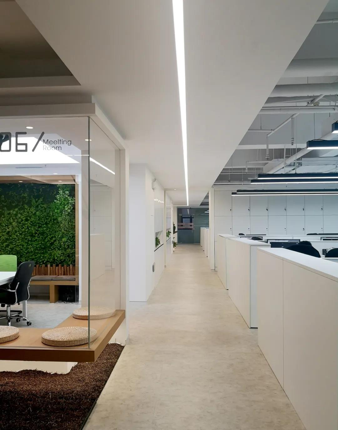 “一環(huán)” 作為空間主要的功能動線,簡潔明了,鏈接所有辦公板塊和領(lǐng)導(dǎo)辦公室,實(shí)現(xiàn)辦公效率的最大化。