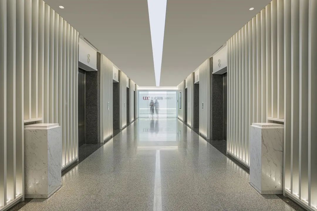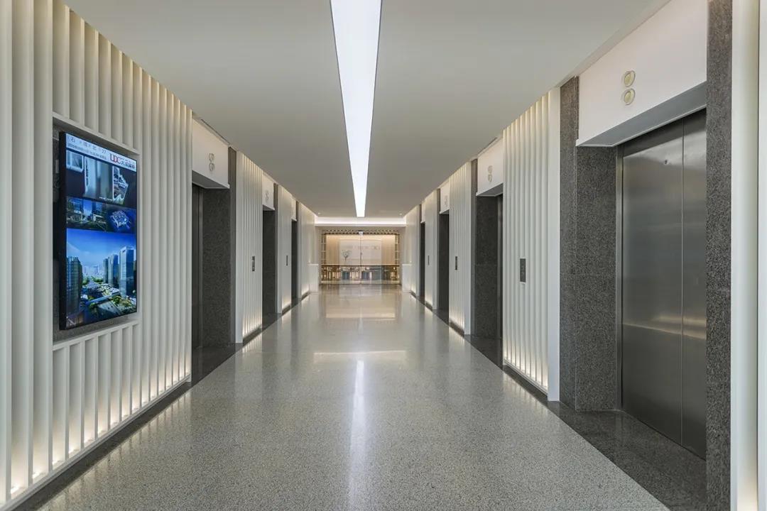 “一軸” 包含樓層電梯廳、企業(yè)門廳、展廳,強(qiáng)調(diào)對空間儀式感的營造;