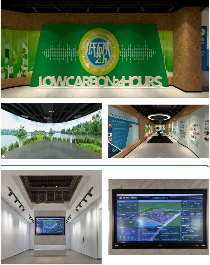 技術(shù)展示場景位于建筑的一樓,劃分為:序廳、綠色建筑技術(shù)、綠色能源、智慧城市、水處理、垃圾處理六大板塊,讓社區(qū)居民認識到前沿技術(shù)對于低碳生活帶來的變化。