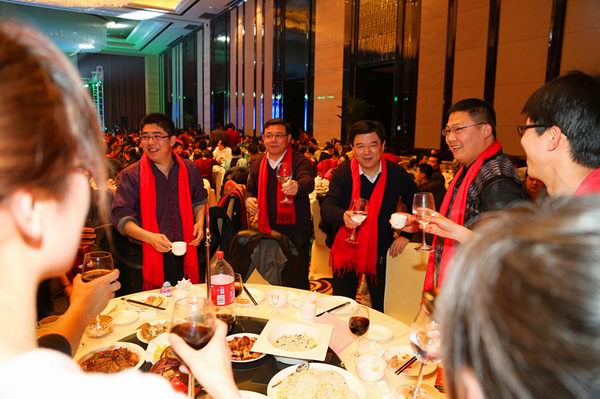 宴會上,員工舉杯同慶, 相互祝愿。員工及家屬朋友多才多藝,熱情地參加演出,紛紛獻(xiàn)上精彩節(jié)目。