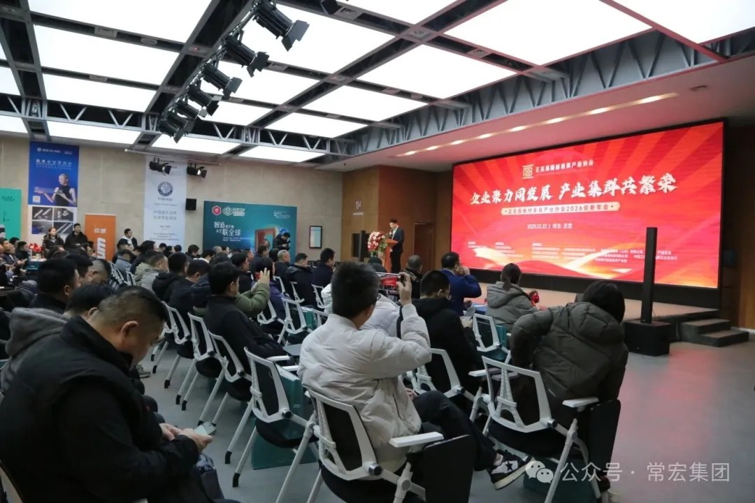 12月22日,正定縣板材家具產(chǎn)業(yè)協(xié)會2026迎新年會在常宏正定展示中心隆重舉行。本次年會以“企業(yè)聚力同發(fā)展,產(chǎn)業(yè)集群共繁榮”為主題,匯聚行業(yè)領(lǐng)導(dǎo)、企業(yè)精英與合作伙伴,共同回顧發(fā)展歷程,展望產(chǎn)業(yè)未來。常宏集團旗下河北普瑞商業(yè)家具科技有限公司作為協(xié)辦單位,為本次盛會提供了場地與會務(wù)支持,與行業(yè)同仁共襄盛舉,共話發(fā)展。