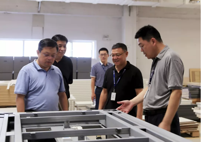 在常宏產(chǎn)業(yè)園總經(jīng)理曹興志的介紹和引領(lǐng)下,習(xí)區(qū)長一行還參觀了產(chǎn)業(yè)園木制品車間、金屬制品車間、標(biāo)識制品車間等,對常宏的規(guī)模與品質(zhì)有了更真切地了解。