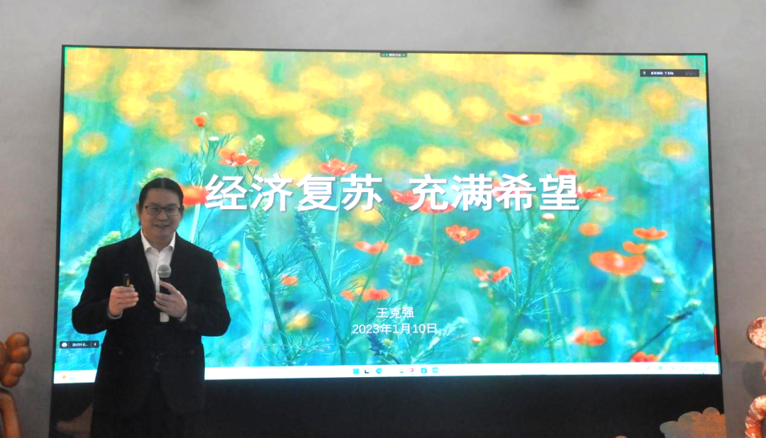 本次會議的承辦方、分會副會長、上海邑通董事長王克強(qiáng)致辭,他首先對能夠承辦店裝分會成立以來線下的第一次會長辦公會擴(kuò)大會議表示榮幸和感謝,并以《經(jīng)濟(jì)復(fù)蘇 充滿希望》為主題作了行業(yè)分析報(bào)告,通過靚麗、多彩的界面?zhèn)鬟f給大家未來希望和信心。他從消費(fèi)者疫情后消費(fèi)信心的提升、高端化勢頭的延續(xù)、各線城市實(shí)際的消費(fèi)變化、產(chǎn)品為王、本土企業(yè)正在贏得市場這五方面給大家分析了國際國內(nèi)社會的宏觀環(huán)境和消費(fèi)的趨勢,商業(yè)店裝行業(yè)的發(fā)展未來可期,點(diǎn)燃了會員企業(yè)對未來發(fā)展的信心和激情。