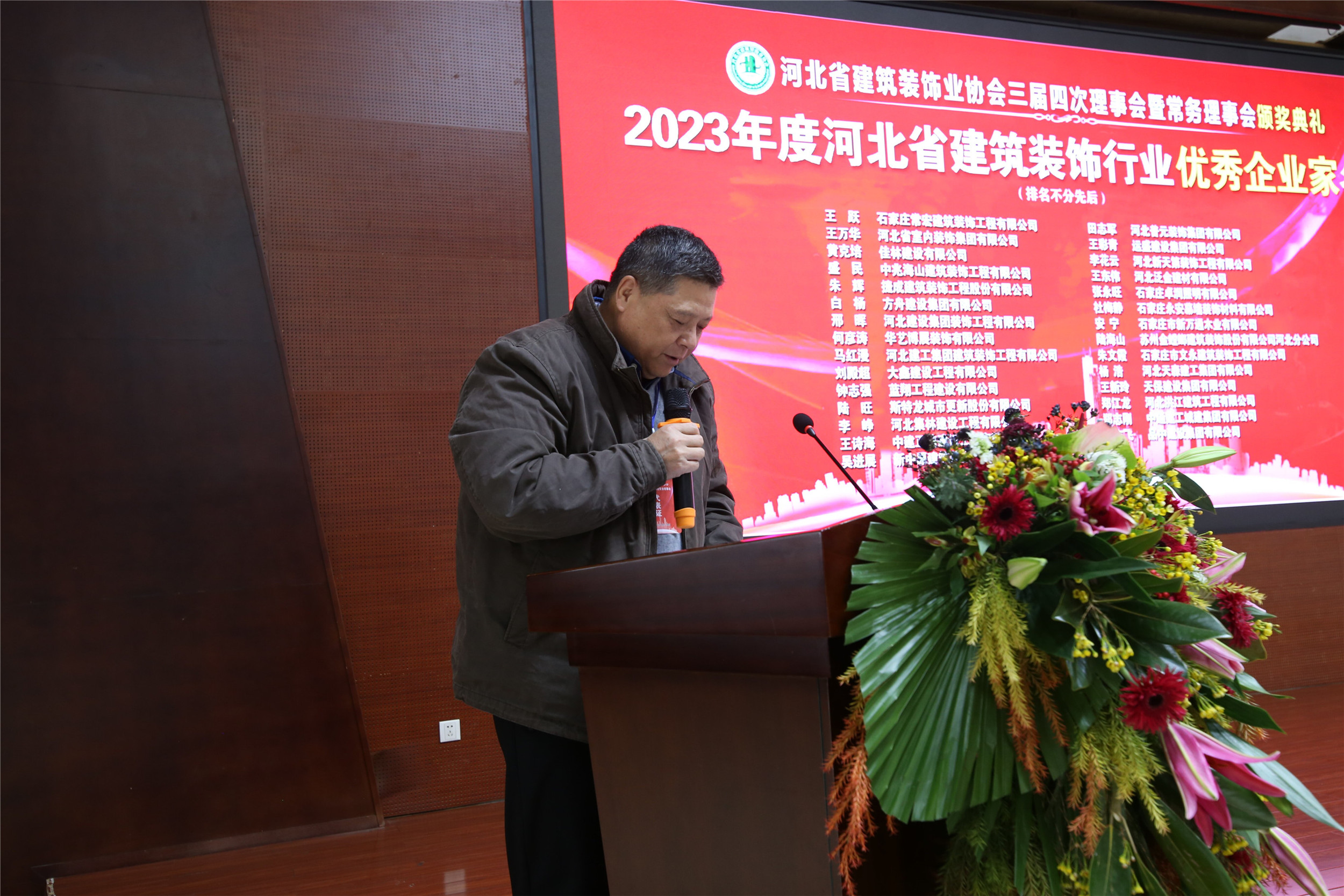 盛民宣讀《關于表彰2023年度河北省建筑裝飾行業(yè)優(yōu)秀企業(yè)家的決定》