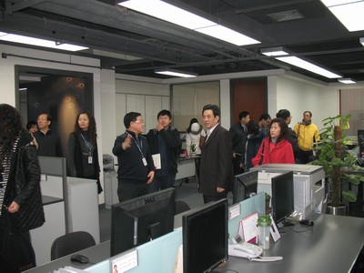 總經(jīng)理王躍先生帶領(lǐng)訪問(wèn)團(tuán)成員參觀了常宏裝飾寫(xiě)字樓。