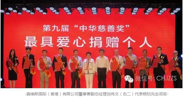 中華慈善獎(jiǎng)是中國(guó)公益慈善領(lǐng)域中的最高政府獎(jiǎng),旨在褒揚(yáng)在賑災(zāi)、扶老、助殘、救孤、濟(jì)困、助學(xué)、助醫(yī)以及支持文化藝術(shù)、環(huán)境保護(hù)等公益慈善領(lǐng)域做出突出貢獻(xiàn)的個(gè)人、機(jī)構(gòu)及項(xiàng)目。楊釗先生獲授予第九屆中華慈善獎(jiǎng)最具愛(ài)心捐贈(zèng)個(gè)人(全國(guó)僅10位慈善家受到此表彰),這也是楊釗先生個(gè)人第三次獲得中華慈善獎(jiǎng)的殊榮。其它獲授“最具愛(ài)心捐贈(zèng)個(gè)人”的慈善家還包括大連萬(wàn)達(dá)集團(tuán)董事長(zhǎng)王健林、金利來(lái)集團(tuán)董事局主席曾憲梓、碧桂園董事局主席楊國(guó)強(qiáng)。民政部指出,中華慈善獎(jiǎng)獲得者為我國(guó)慈善事業(yè)發(fā)展提供了示范和引領(lǐng),作出了杰出貢獻(xiàn)。