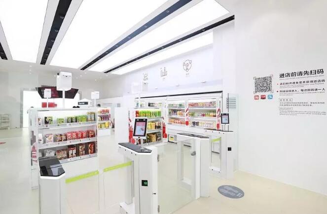 占地80平方米的天貓未來(lái)店,陳列著多種食品飲料和零食,一次性可容納20余位消費(fèi)者,向世界展示了未來(lái)便利店的“無(wú)人零售”元素。