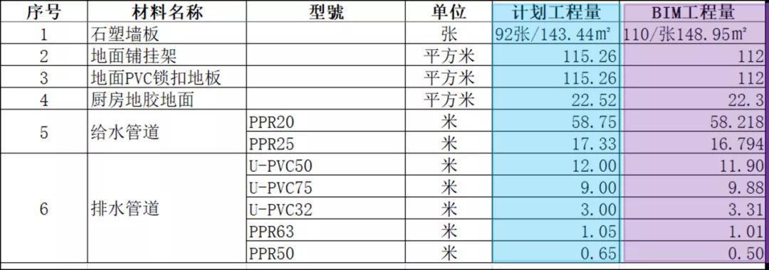 5、工程量的統(tǒng)計(jì)。通過(guò)BIM的模型對(duì)各種材料量的統(tǒng)計(jì)可以快速生成報(bào)價(jià),同時(shí)指導(dǎo)實(shí)際的材料使用量。