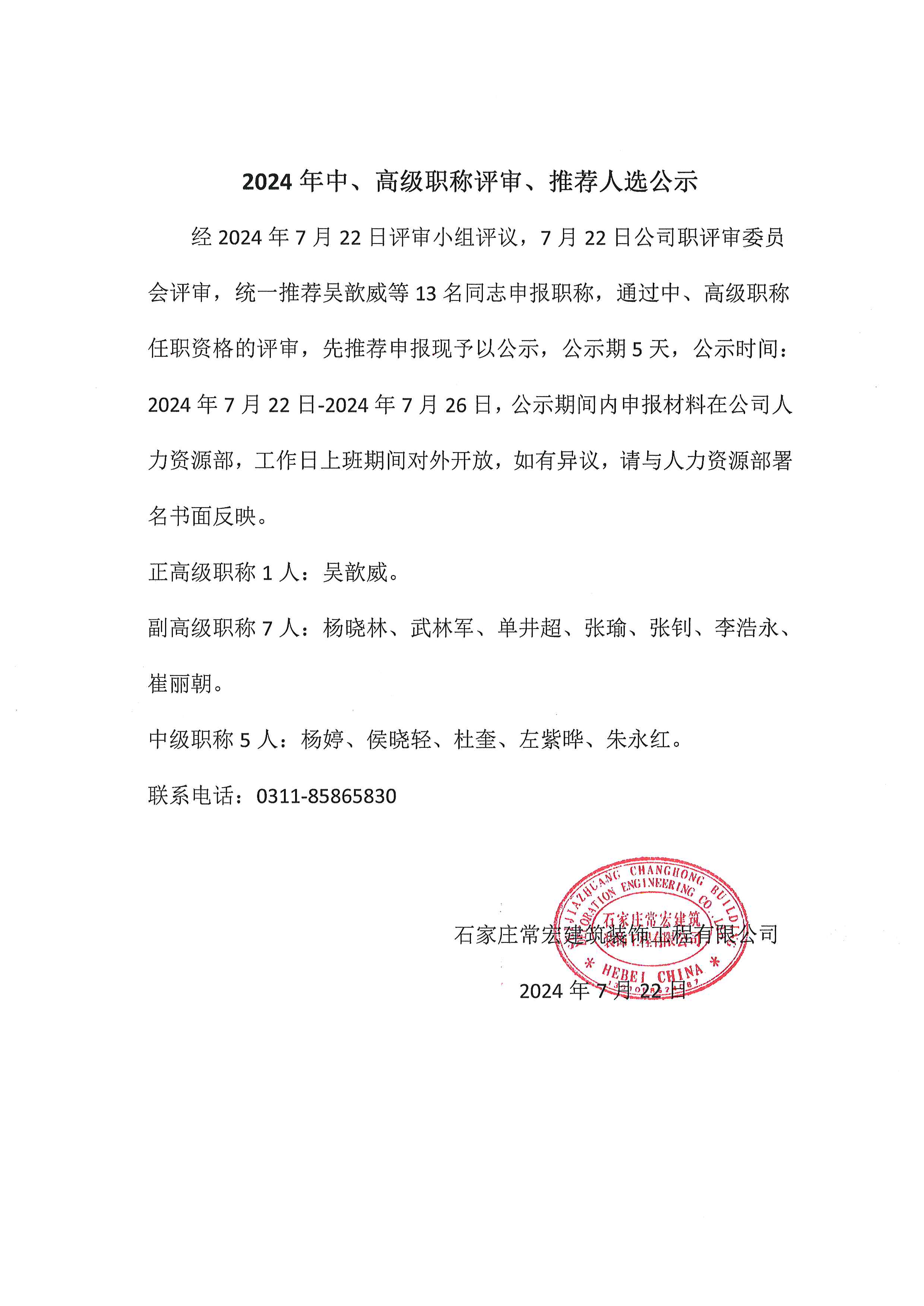 首頁> 關(guān)于我們> 公司新聞> 2024年中、高級(jí)職稱評(píng)審、推薦人選公示