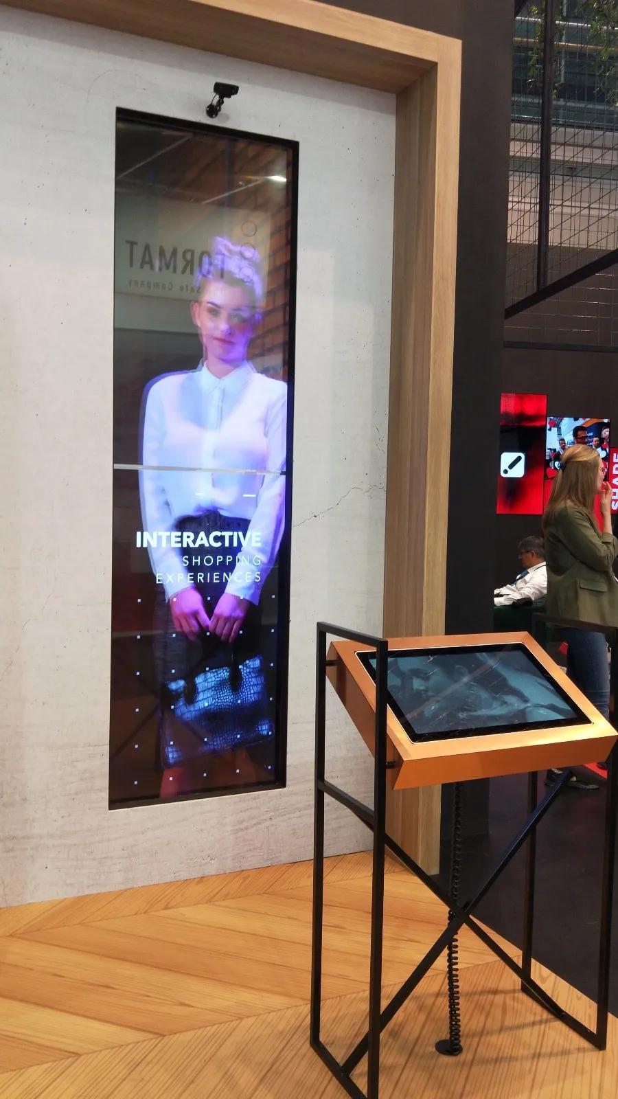 下面是荷蘭的一家公司整合的零售店智能產(chǎn)品,雖然在技術(shù)層面上不比國內(nèi)先進多少,但是內(nèi)容設計上還是我們值得借鑒的。前面的一個屏幕供顧客選擇衣服并提供各種搭配,大屏幕上同時出現(xiàn)你做出的選擇和模特穿著你所選衣服的靚麗外表。當您還在欣賞自己選擇的衣服是否合適時,會出現(xiàn)一個跟模特一樣的真人。也許這就是西方特有的幽默吧。