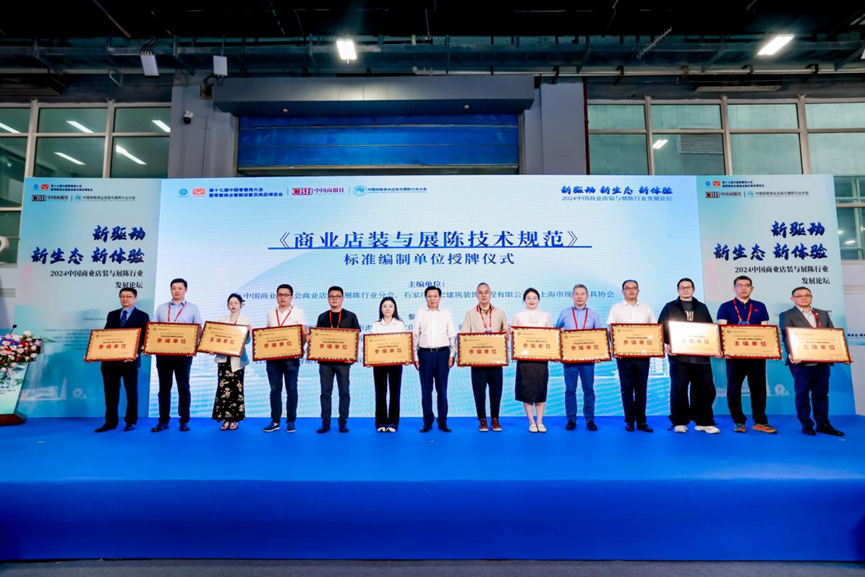 中國商業(yè)聯(lián)合會執(zhí)行會長王民對參與中國商業(yè)聯(lián)合會團體標準《商業(yè)店裝與展陳技術規(guī)范》編制的單位進行授牌